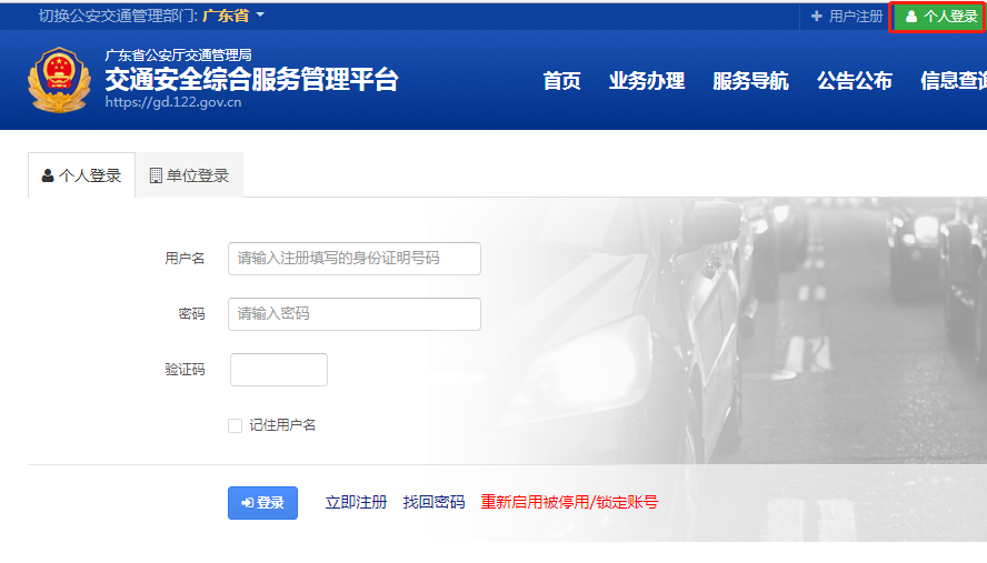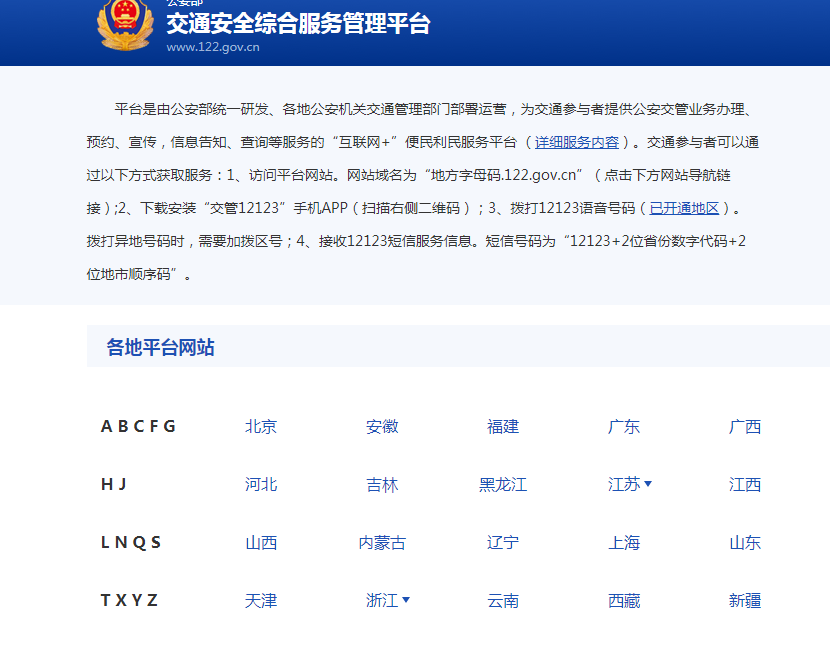 第一步:首先登录交通综合服务管理平台,选择所在城市。