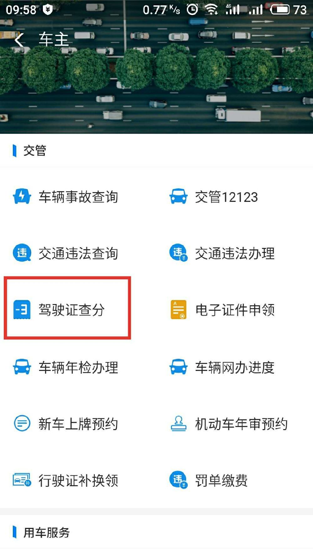第四步:点击“驾驶证查分”,输入驾驶证号及档案编号即可查询。