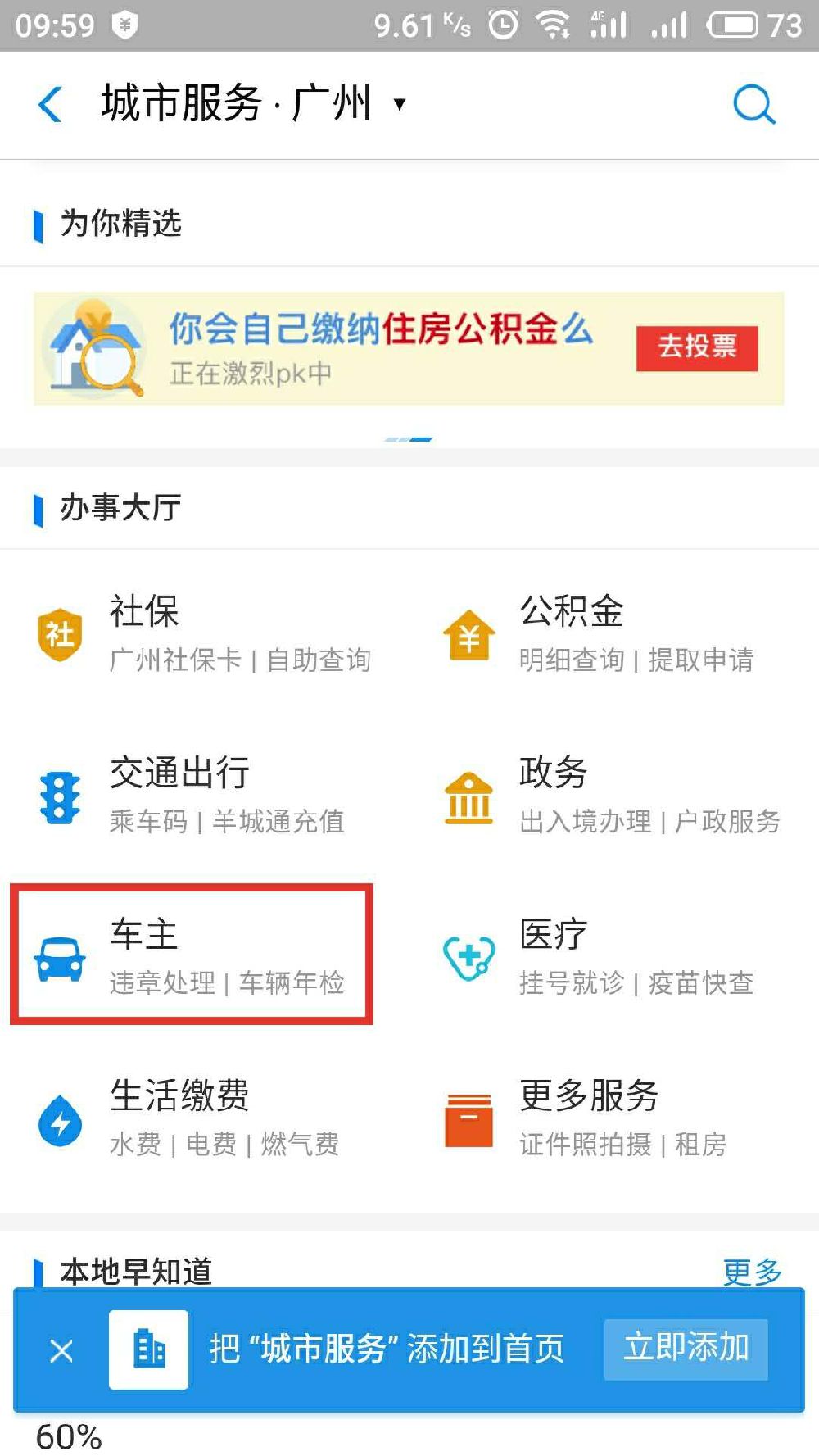 第二步:点击“城市服务”或顶端搜索框搜索“城市服务”