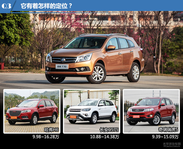 定坐落于紧凑型级SUV的启辰T70但是要遭遇一票强劲的敌人,在自有品牌紧凑型级SUV中不缺万里长城H6、北京长安CS75、奇瑞瑞虎5等实力派演员参赛选手。