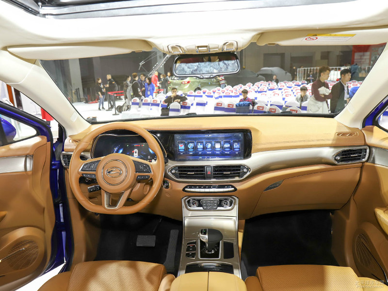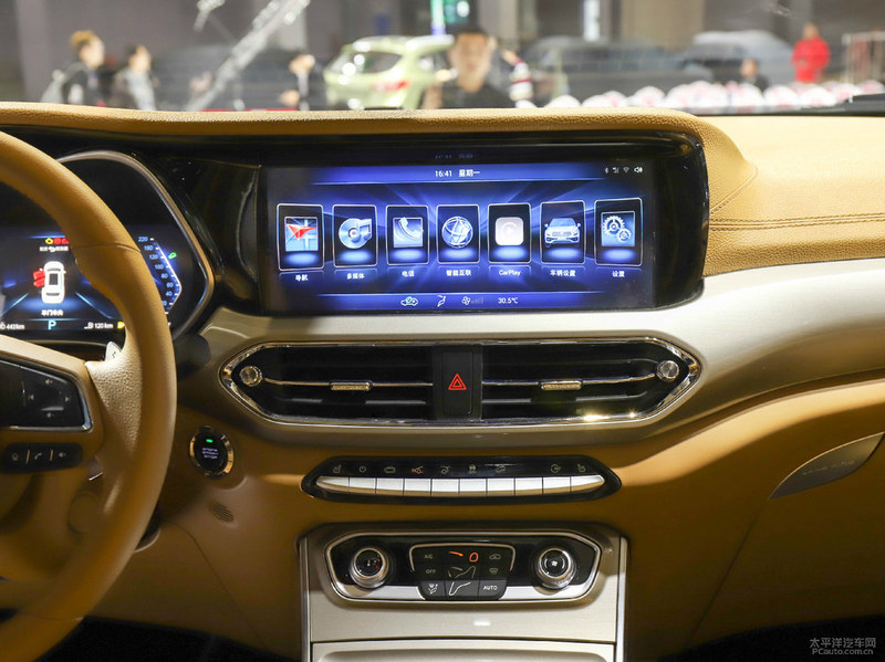 车内饰层面,新汽车配置了全液晶显示屏仪表盘及其尺寸较大中控台液晶显示屏,并由中控台包复,正下方是不锈钢装饰条装饰设计,另外还含有车内氛围灯,一直持续到中门护栏正下方。新汽车的空调风口选用了不规则图形设计方案,并在周边加上金属拉丝材料装点,提高整车内装饰的层次感。