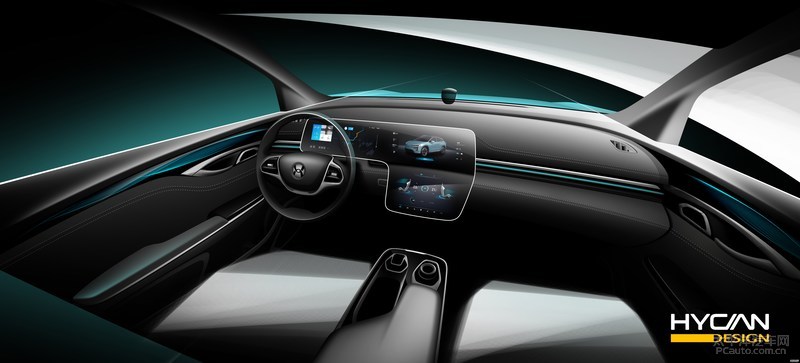 侧边的波导线向后上边拓宽,歪斜的设计方案突显了其速度感。同蔚来汽车车系一样,此车也选用了内藏式的汽车车门门把。在尾端层面,此车的D柱选用了大倾角设计方案,类似小汽车掀背的造型设计。尾端的T形后尾灯极为个性化。在后尾灯中央政府,标着合创的英语标志“HYCAN”。