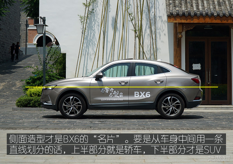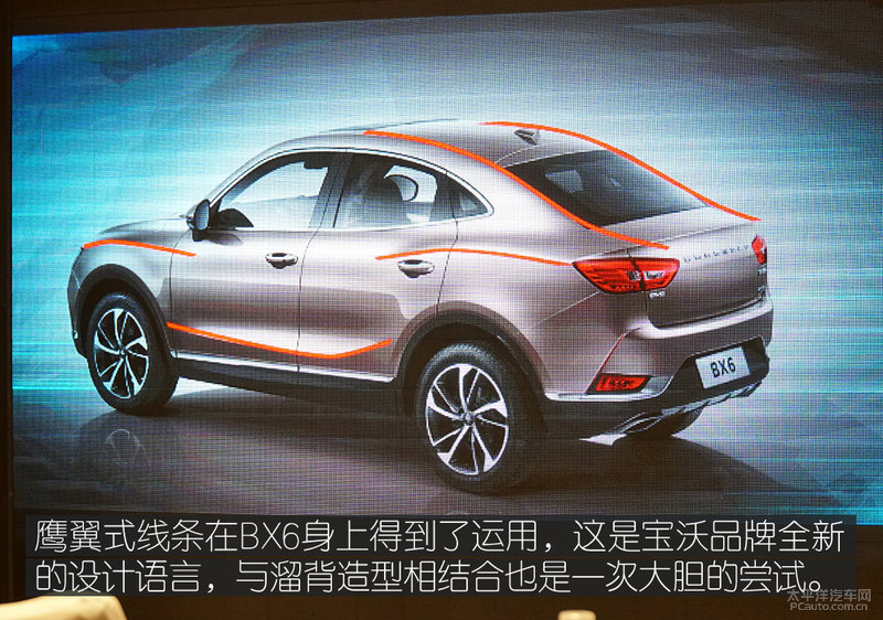 1 溜背造型设计显个性化BX6最显著的商品特性就是其溜背造型设计。倘若只看前脸,BX6与BX5十分相似,并不大好鉴别,侧边造型设计才算是BX6的“个人名片”。