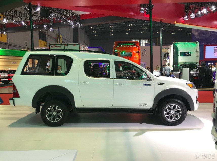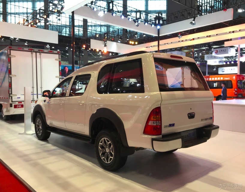 后尾一部分因为封闭式车箱的设计方案,使尾端看起来较为伟岸。电动尾门选用了一体式的设计方案,很像SUV的电动尾门。开启后有一个超大型的车箱室内空间,而且侧窗挺大,也为车箱內部出示了一个优良的光照。后尾灯造型设计与拓陆者车系一致,三角形的设计方案很有辨识度。