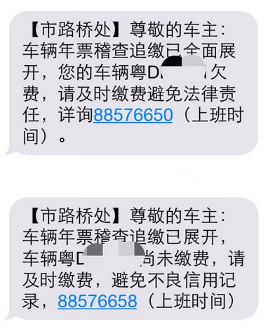 没交年票 收到追缴短信-车辆年票